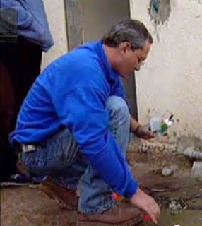 В ролике не указано кто на этом кадре подбирает останки существа. Только показано. По-видимому, это собиратель улик от полиции, а фрагмент видеозаписи из полицейского архива. Голос диктора: "Это не удивительно, потому что люди из той местности рассказывают о происходящем в небе" Далее в ролике одна неизвестная женщина что-то неразборчивое говорит об НЛО, но ее перебил мужчина в очках справа "какой еще НЛО?" женщина отвечает "очень огромный НЛО" и разводит руки, чтобы показать размер. Мужчина перебил и сказал что НЛО здесь не при чем, а речь идет об "этой ящерице". Но женщина вновь повторяет фразу "гигантский НЛО". В конце ролика сообщается что пока что госпожа Циона Дамти хранит это в холодильнике). Следует уточнить, кто не