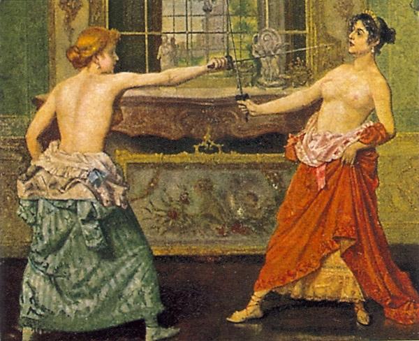 Нет ни одной мужской профессии или занятия, которую не примеряли бы на себя женщины. Некоторые это делают из любопытства, некоторые -чтобы доказать противоположному полу, что женщины способны на все. Другой движущей силой, заставляющей женщину проходить все, даже самые непробиваемые препятствия, является любовь. Ради нее женщины дрались даже на дуэли и хладнокровно закалывали своих противниц и противников. И это те самые нежные слабые создания, о которых не перестают слагать легенды и которых не перестают воспевать в стихах и одах. ![]() Но как же скучно было бы нам без этих взбалмошных, возвышенных, вдохновляющих на безумства и подвиги женщин! И не только вдохновляющих, но и активно создающих историю, бросая вызов всему человечеству. Упомянутые здесь слова о дуэлях абсолютно не случайны. Как только на земле появилась шпага как вид холодного оружия, на нее посягнули и...женщины. Было бы совершенно неверным думать, что представительницы нежного пола только в продвинутом и эмансипированном XX веке так упорно стремились присвоить все исконно мужское - манеру поведения, участие в общественной жизни, одежду, профессии, увлечения. Такова уж натура женщины, что ей всегда хочется того, что, по идее, ей не должно принадлежать. Так что уже древние гречанки прилагали немало усилий (вплоть до риска лишиться жизни), чтоб попасть на запретные для женщин Олимпийские игры, а древние римлянки обожали мужские бани и мужской разгульный образ жизни. Более того, женщины-гладиаторы иной раз одерживали победу над представителями сильнейшего пола. Да и в гламурные средние века, когда, казалось бы, даже мужчины стремились быть максимально изнеженными, выхоленными и роскошными, женщины, тем не менее, жаждали быть "как мужчины" и вполне успешно реализовывали свои мечты. Француженки не менее истово, чем мужчины, защищали свою честь на дуэлях (а следовательно, прекрасно владели оружием и соответствующей амуницией). А в России женские дуэли расцвели буйным цветом благодаря покровительству Екатерины II, которая собственноручно дралась на дуэлях уже с 15 лет. С развитием же современной цивилизации и выстраиванием соответствующих общественных отношений вторжение женщин в типично мужские сферы жизни стало и вовсе повальным. Таким образом, женщины, с одной стороны, отстаивали свое право быть не только одушевленной машиной для продолжения рода и объектом сексуальных увлечений мужчин, но и полноправной личностью, а с другой стороны, удовлетворяли свои амбиции и честолюбие, которых у женщин было всегда на порядок больше, чем у представителей противоположного пола. Акцентируя внимание на дуэлях, в которых принимали инициативное участие отважные дамы "голубых кровей", хочется большими буквами выписать имена легендарных женщин-дуэлянток. Кто-то наверняка будет оспаривать это суждение, но никто не давал право мужчинам определять женщине второстепенную роль. И отважные представительницы так называемого слабого пола доказывают это на протяжении веков. В 1552 году в Неаполе произошло неординарное событие - две дамы, Изабелла де Карази и Диамбра де Петинелла, дрались на дуэли в присутствии маркиза де Баста. Дуэль состоялась из-за молодого человека по имени Фабио де Зересола. Этот поединок так потряс неаполитанцев, что молва о нем не утихала долгое время. Эта романтическ