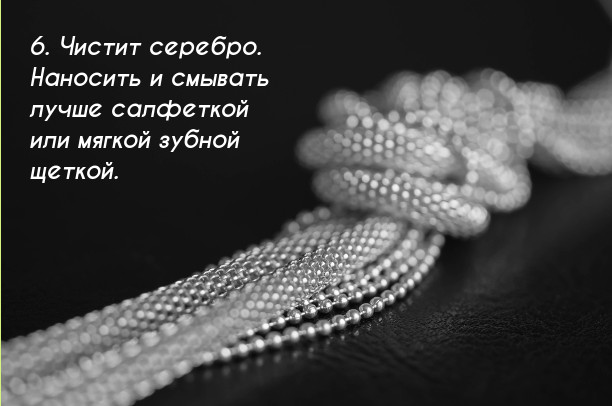 А теперь зачеркни эту космическую сумму, возьми 40 рублей, купи пачку соды, пачку соли и тюбик отечественной зубной пасты – и на остальные гуляй! Зубная паста (самая простая – около 15 рублей) Чистить ею зубы – ясное дело, полезно, но так банально. Она умеет еще много гитик! 1. Снимает раздражение при комариных укусах. Слегка помазал – и зуд попускает. 2. Подсушивает небольшие ранки и прыщики. Смазал на ночь – к утру полегчало. Так что в пионерлагерях мы полезной процедурой занимались! 4. Замазывает пятна. Белые матерчатые туфли и кроссовки добела не отстирываются – заполируем их пастой, а еще лучше – зубным порошком. 5. Помогает отдраить металлическую посуду. Особенно отбеливающая, с хорошей дозой абразива. 7. Закрашивает ненужное на белой стене или светлых обоях. Если, к примеру, ваш малыш применил к ним свой заряд креатива и набор фломастеров. 8. Чудно отмывает потерявшую лицо плитку в кухне, ванной или туалете. 9. Служит отличным освежителем. В тюбике самой дешевой мятной пасты сделайте несколько проколов и положите в сливной бачок. И будет вам для слива ароматизированная вода! Сода (около 20 рублей за пачку) Отмыть чашку, пополоскать горло или распушить выпечку – это все знают. А вот что знают явно не все… 1. Служит антиперспирантом. Немного влажной содовой кашицы на ватный диск, протереться в сакральных местах – и уже не пахнешь, можно в люди. 3. Очищает расчески и зубные щетки. Достаточно растворить несколько ложечек в литре воды и подержать их там минут десять, а потом смыть. 4. Чистит столовое серебро. Сунули ложки в тазик, засыпали содой, залили водой – и когда через полчасика протерли, они будут опять словно солнышко сиять. 6. Чистит микроволновку от жира. В поллитровый контейнер с водой сыплем пару ложек – и включаем на десять минут. Потом остается только протереть тряпочкой. 7. Продлевает жизнь срезанным цветам. Добавим щепотку в вазу с водой. 8. Поглощает ненужные запахи. Стоит положить тряпичный мешочек с содой в холодильнике, в шкафу, в автомобиле, где-то возле кошачьего лотка. 10. Содовым раствором можно и даже полезно мыть голову. А сам порошок использовать в качестве сухого шампуня для волос в условиях, приближенных к полевым и цейтнотным. Посыпала голову, слегка взбила и хорошенько расчесала – и часть лишнего кожного жира успешно ушла. Соль (около 10 рублей за пачку) В споре Робинзона и Пятницы, надо ли солить еду, исторически победил Робинзон. Пора этому полезному порошку победить и на других фронтах! 1. Улучшает стирку. Добавить немножко соли в воду можно для сохранения яркости краски, а зимой – чтобы ткань не замораживалась при сушке на балконе. 2. Вернет блеск потемневшему стеклу и хрусталю. На тряпочку для протирки – немного крупной соли плюс уксус. 4. Освежит воздух в комнате. В стеклянную банку положить слой апельсиновой цедры или розовых лепестков и засыпать солью. 6. Поможет усталым ногам. Опусти измученные конечности в тазик с теплой соленой водой минут на 15. Лучше растворять морскую соль, но пойдет и обычная. 7. Спасет, если сломался холодильник или отрубилось электричество. В солевом растворе можно хранить яйца и сливочное масло, слоем соли посыпать открытую банку томатной пасты. 9. Поможет наточить тупой нож. Перед затачиванием подержать его в соленом растворе. 10. Убережет плетеную мебель от пожелтения. Просто протираем ее и