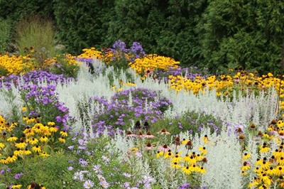 Цветник на дачном участке может многое рассказать о его хозяевах: их вкусах, пристрастиях, а главное, о том, умеют ли они подходить к любому делу с умом. Конец августа — удачное время для закладки нового цветника или реконструкции старого. Созданию цветочных композиций посвящены целые тома, но проштудировать их под силу далеко не каждому. Зато воспользоваться нашим конспектом сможет любой дачник. Многие дачники привыкли сажать декоративные растения туда, где на участке есть свободное место, не задумываясь о том, как впоследствии они будут сочетаться друг с другом и окружением. Именно поэтому вместо красивого цветника в итоге чаще всего получается невразумительная каша, в которой теряют привлекательность даже самые эффектные растения. Поэтому к устройству цветника стоит подходить серьёзно. Сделать его по правилам не так уж трудно, а результат заслуживает того, чтобы немного потрудиться. Концепция Строгие регулярные композиции, имеющие правильную геометрическую форму, встречаются на участках не слишком часто да и не лучшим образом подходят для маленьких неформальных садиков — ведь регулярная планировка, зародившаяся ещё в древности, предназначалась в основном для просторных парков. Поэтому лучше остановиться на цветнике со свободными очертаниями, где соседствуют самые разные растения — однолетники и травянистые многолетники, луковичные и даже кустарники. Такие композиции называют смешанными (иногда используется термин «миксбордер»). Как правило, одни цветущие растения в них сменяют другие. Однако существуют цветники сезонной декоративности, которые хороши только в течение некоторого времени. У композиций со свободными очертаниями имеется ещё одно преимущество перед регулярными: неопытным садоводам они даются легче. Геометрические цветники подчиняются строгим требованиям, которые не всегда удаётся соблюсти увлечённому цветоводу-любителю. Размер и форма Закладку нового цветника начинаем с выбора места. После этого надо прикинуть размеры будущей композиции. Не стоит замахиваться на нечто грандиозное, если вы бываете на даче только по выходным, — ведь за цветником понадобится уход. Длина его в принципе может быть любой, а вот ширину лучше планировать, исходя из того, чтобы за растениями было удобно ухаживать. Ориентируйтесь на свою вытянутую руку: хорошо, когда максимальная ширина не превышает её удвоенный размер. Тогда, подойдя к цветнику с одной или с другой стороны, вы без труда дотянетесь до растений в центре. Продумывая очертания композиции, возьмите шланг для полива (желательно яркого цвета) и выложите с его помощью контур цветника на местности. Обязательно посмотрите на него с разных сторон, даже если посадки будут располагаться вплотную к забору или к стене дома. Если результат вас устраивает, конфигурацию стоит перенести на бумагу: полученная схема поможет подбирать и располагать растения в цветнике. Делается это в масштабе, лучше всего на миллиметровке, предварительно проведя тщательные измерения всех необходимых размеров с помощью рулетки. Размещение Продумывая план современного цветника, необходимо соблюдать некоторые несложные правила. Растения в нём высаживают только группами. Чем больше экземпляров будет в каждой из них, тем эффектней окажется композиция. При этом расстояние между ними с