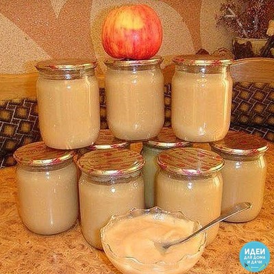 5 кг. яблок 1 банка сгущенного молока 0.5 стакана сахара 1 стакан воды Яблоки помыть, дать стечь воде, затем очистить их от кожуры и сердцевинки разрезав на 4 части, затем порезать кусочками. На дно посуды в которой будете варить влить воду (желательно взять кастрюлю с толстым дном, чтобы пюре не пригорело), уложить яблоки, накрыть крышкой и варить на медленном огне пока яблоки не станут очень мягкими (примерно минут 30). Затем выключить огонь и яблоки тщательно размять в пюре, можно погружным блендером, или просто толкушкой размять. Затем в яблочное пюре всыпать сахар, перемешать и довести до кипения, влить сгущенное молоко, размешать, довести до кипения и варить иногда помешивая 5 минут (следите чтобы пюре не пригорело!). Затем готовое пюре разложить по стерильным баночкам и закупорить прокипяченными крышками. Укутать и оставить так баночки до остывания. |