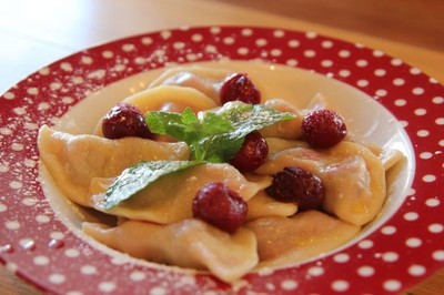 Чтобы вишневая начинка не размачивала тесто, чтобы тесто не рвалось и вишня оттуда не вытекала, достаточно знать пару простых секретов о варениках. Вареники из вишни, со сметаной, сладкие, ароматные, такие, как лепила бабушка — какой завтрак может быть лучше этого. Вот только вишневую начинку в варенике трудно удержать. Она дает много сока, вареник разваливается, расплывается. Как приготовить правильные вареники с вишней, такие, которые будут отлично выглядеть на тарелке, хороши на вкус нам рассказал Евгений Гольденберг, шеф-повар кафе «Вареничная № 1». Вишня Чаще всего мы делаем вареники с замороженной вишней. Но сейчас сезон, можно купить свежую. Из нее вареники получаются вкуснее. Но работать с ней несколько сложнее. Так что тут каждый выбирает для себя, вкус или простота. Впрочем, и замороженная вишня в варениках — хороша. Понадобится на 3 порции вареников: Для теста: 600 г муки250 мл воды2 ст.л. растительного маслаСоль1 яйцо Для начинки: 150 г вишниСахар Шаг 1. Если вишню для начинки мы используем мороженую, то достаем ее из холодильника и ставим размораживаться в дуршлаге, чтобы сразу из нее стекал сок. Если вишню берем свежую, то вынимаем из нее косточки, и даем стечь соку. А потом засыпаем сахаром и оставляем на некоторое время, чтобы сок загустел. Комментарий шефа: Часто в вишню рекомендуют добавлять крахмал, но я не добавляю, мне нравится натуральный вкус ягод, а крахмал его портит. Шаг 2. Делаем тесто. Яйцо взбиваем с водой, солим и добавляем растительное масло. Комментарий шефа: Яйцо может быть из холодильника, но вода — обязательно комнатной температуры. В теплой воде мука быстрее выделит клейковину, тесто лучше замешивается. Шаг 3. Муку просеиваем два раза в большую миску. Делаем углубление в центре и заливаем туда водно-яичную смесь. Комментарий шефа: Чем больше просеиваете муку, тем она получается воздушнее. Это важно, когда мука смешивается с водой. Реакция наступает быстрее, мука сразу пропитывается водой и тесто замесить можно проще и быстрее. Шаг 4. Все перемешиваем до однородной массы, потом смазываем стол небольшим количеством масла и переходим месить на него. Комментарий шефа: Мы используем растительное масло вместо муки для подпыла, чтобы тесто получилось более эластичное. Важно соблюдать пропорции, если вы взяли правильное количество муки и воды, то тесто быстро перестают липнуть к рукам и приобретает гладкую структуру. Правильная консистенция: если правилшьное количество муки, тесто не липнет к рукам и очень быстро приобретает гладкую структуру. Когда мы месим на масле, то тесто становится еще более гладким. Признаки готового теста: эластичность, отставание от рук, гладкая текстура. Шаг 5. Из теста нужно сформировать шар, укрыть его полотенцем и оставить на полчаса. Комментарий шефа: Это очень важный момент, без выдержки — тесто вы раскатать не сможете. Пока тесто выдерживается, клейковина в муке набухает. Тесто немного увеличивается в объеме и становится плотнее. Если выдержку пропустить, то тесто будет слишком сухое или слишком липкое и вы не сможете его раскатать. Выдерживается тесто при комнатной температуре, если хочется слегка ускорить этот процесс, то можно положить тесто в чуть более теплое место, поближе к батарее или плите, но не рядом. В тепле клейковина набухает лучше. Шаг 6. Тесто разделяем на небольшие ку