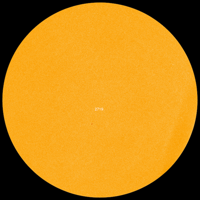 Мы уже сообщали, что Солнце, находясь в глубоком минимуме 11-летнего цикла активности, «спит младенческим сном». Такое состояние характеризуется нулевой вспышечной активностью и минимальной продуктивностью пятен. Тем не менее 22 августа опытный астрономический глаз мог наблюдать на абсолютно чистой поверхности Солнца малоразмерное быстро движущееся пятно. Оказывается, что самое большое за последние дни солнечное пятно было совсем не пятном, а 470-тонным космическим кораблем, размерами больше «Боинга-747». Румынский наблюдатель Максимилиан Теодореску запечатлел пролет МКС. Как сообщает автор, ему очень повезло — на скоротечный пролет МКС пришлось облачное окно. На фотографиях высокого разрешения видны структурные детали рукотворного «солнечного пятна». ![]() © Максимилиан Теодореску ![]() © Максимилиан Теодореску После пролета космической станции солнечный диск почти полностью пуст. Мониторинг отмечает только одно небольшое и спокойное пятно 2719.