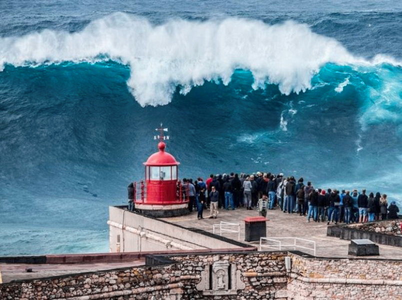 На атлантическом побережье Португалии находится небольшой город Назаре. Летом он привлекателен туристам – любителям пляжного отдыха и курортникам. В холодный период года сюда приезжают экстремалы и искатели острых ощущений, поскольку это место славится огромными волнами до 30 м высотой. Они возникают из-за перепада глубин между континентальным шельфом и подводным каньоном, глубина которого доходит до 5 км. Недалеко от берега дно океана круто повышается, потому волны образуются совершенно неожиданно. А почти у самого берега море становится мелководным, как бы гасит гигантскую стихию. Кроме того, здесь наблюдается подводное течение, усиливающее эффект волны.