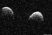 Открытый в прошлом году астероид 2017 YE5 оказался редкой разновидностью двойной астероидной системы. Размер объектов, вращающихся на орбитах друг друга, — около 900 метров. Это четвертый известный околоземный астероид такого типа. Астероид 2017 YE5, обнаруженный 21 декабря прошлого года Марокканским небесным обзором, 21 июня подошел к Земле на максимально близкое за 170 лет расстояние в 6 миллионов километров. Наблюдения в калифорнийской обсерватории Голдстоун впервые показали, что 2017 YE5 может быть двойной системой. Повторные независимые наблюдения, проведенные 24 и 26 июня обсерваторией Аресибо в Пуэрто-Рико, подтвердили двойную природу астероида. Новые данные, полученные с 21 по 26 июня, показывают, что два объекта вращаются вокруг друг друга каждые 20-24 часа. Радарное изображение показывает, что оба объекта больше, чем изначально предполагалось на основе их совместной оптической яркости. Это свидетельствует о том, что они не отражают столько солнечного света, сколько типичный каменистый астероид. Вероятно, 2017 YE5 темный, как древесный уголь. Изображения, полученные обсерваториями Голдстоун и Аресибо, также показывают поразительную разницу в отражательной способности двух объектов. Среди более чем 50 других двойных астероидных систем, изученных радиолокаторами с 2000 года, не наблюдалось ничего подобного. Однако большинство из них состоят из одного крупного объекта и гораздо меньшего спутника. Возможно, эти два объекта имеют разную плотность, отличаются по составу или рельефу поверхности. По подсчетам ученых, среди околоземных астероидов размером более 200 метров около 15 % являются двойными с одним большим объектом и гораздо меньшим спутником. Двойные астероиды равной массы, такие как 2017 YE5, встречаются намного реже. Контактные двойные астероиды одинакового размера, представляющие собой два соприкасающихся объекта, составляют еще 15 % околоземных астероидов размером более 200 метров. Обнаружение 2017 YE5 важно для лучшего понимания различных типов двойных астероидов. Дальнейший анализ радиолокационных и оптических данных позволит оценить плотность объектов, получить сведения об их составе, внутренней структуре и процессе формирования. |