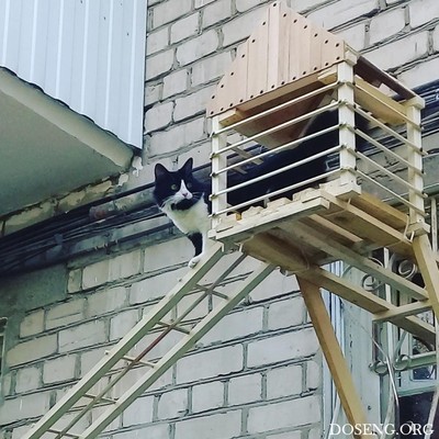 Валерий Семёнов из Волгограда настолько любит свою кошку , что построил для нее отдельный вход в дом. В течение трех дней мужчина возвел лестницу с зонами отдыха и даже подсветкой. Лестница позволяет животному попасть на улицу из окна первого этажа. На ней даже установлен домик для отдыха кошки, а ночью конструкцию подсвечивает светодиодная лента.
