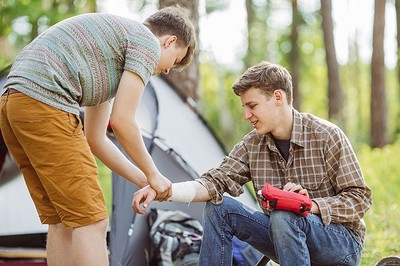 Как правильно: до оказания врачебной помощи настойкой йода (если у пострадавшего нет на него аллергии) или другим дезинфицирующим средством разрешается обработать только края раны, наложив на неё давящую повязку из чистой ткани (носового платка, футболки). При этом ткань нужно свернуть в плотный валик и положить прямо на рану, придавив рукой, подержать не менее 5 минут и затем, не снимая (чтобы не повредить образовавшийся кровяной сгусток), сверху туго прибинтовать.