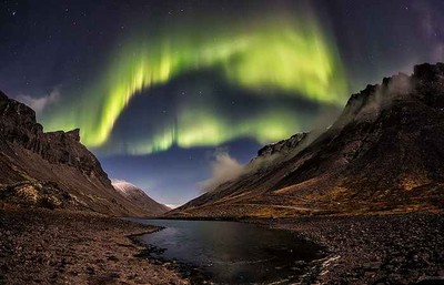 Полярное сияние — электрическое свечение верхних разреженных слоев атмосферы Земли, которое возникает в результате соударения заряженных солнечных частиц и газов в атмосфере… Сияние, представляет из себя поистине завораживающее зрелище: цветные дуги, лучи, пятна, кольца, вихри, которые быстро передвигаются по воздуху, переливаясь разными цветами. Порой движение и игра цветами этого невероятного природного калейдоскопа может продолжаться от десятков минут до нескольких суток. Обычно, полярное сияние возможно наблюдать на высоте от 80 до 1000 км. Высота появления и цвет небесного свечения зависят от состава атмосферы. Более яркими и интенсивными для земной атмосферы являются зеленое или красное свечение кислорода и фиолетовое азота. Вместе эти газы могут создавать невероятные сочетания, начиная с высоты приблизительно в 100 км, а на высоте больше 200-400 км основным осветительным элементом будет выступать уже один кислород. В истории Еще не так давно в течении многих столетий это уникальное природное явление вызывало у человека суеверный страх или благоговейный трепет. Для древнего викинга полярное сияние было ликом его верховного бога Одина и считалось благоприятным знамением. Жители Гренландии верят в то, что в сполохах полярного сияния находятся души их предков, которые живут после смерти на небесах. Природа явления В наше время ученые знают о природе полярного сияния, его научились создавать искусственно и детально классифицировать. Общеизвестный факт, что от Солнца во все стороны, вместе с волнами электромагнитного излучения, распространяются на огромной скорости потоки электрически заряженных частиц (протонов и электронов), которые получили название солнечного ветра. Его взаимодействие с магнитным полем Земли приводит к повышенной концентрации заряженных частиц в зонах, окружающих геомагнитные полюсы Земли, что может объяснить то, почему именно в Арктике и Антарктике чаще всего наблюдается полярное сияние. Сталкиваясь с атомами кислорода и азота, солнечные частицы приводят их в возбужденное состояние, то есть сообщают им электрический заряд, как результат, выделяется избыток энергии, молекулы воздушного вещества дают яркое световое излучение. Если замена электронов происходит в молекулах кислорода, излучение приобретает оттенки в зеленой и красной областях спектра, если в молекулах азота – сияние приобретает фиолетовый оттенок. Такого рода процессы могут происходить лишь в высоких слоях атмосферы, потому как в низких, более плотных слоях сталкивающиеся атомы и молекулы воздуха сразу же отнимают друг у друга энергию, полученную от солнечных частиц. Если наблюдать с земной поверхности небесное свечение проявляется в виде общего быстро изменяющегося свечения неба или движущихся лучей, полос, корон, «занавесей». Раньше считали, что полярные сияния в северном и южном полушариях симметричны. Но одновременное наблюдение за полярным сиянием в мае 2001 г. из космоса со стороны северного и южного полюсов показало, что северное и южное сияние все-же отличаются друг от друга. 2016 год — обнаружили новый вид полярных сияний — фиолетового цвета. Его назвали Стив. Когда у полярного сияния нет цвета Временами можно наблюдать только свечение, которое не имеет цвета. Так происходит не из за особенностей природного явлен