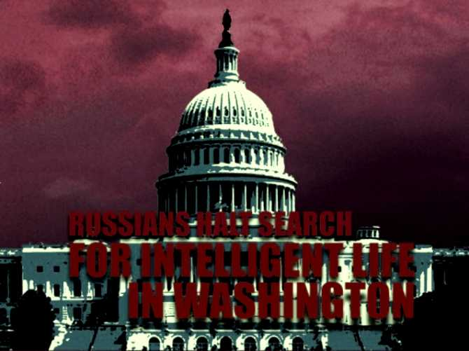 Группа российских исследователей, утверждавших, что они нашли признаки разумной жизни в Вашингтоне, теперь обнаружила, что жизнь там всё же оказалась не настолько разумной, об этом в своём сатирическом рассказе пишет Bryan Hemming в издании off-guardian.org.