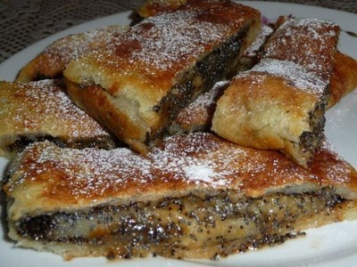 Ингредиенты: Творог — 500 грамм маргарин — 250 грамм мука — 1-1,5 стакана сахар — 1-2 ст.л. сода, гашеная уксусом — 0,5 ч.л. вареная сгущенка — 2-3 ст.л. Приготовление: Творог растереть с мягким маргарином, добавить остальные компоненты, замесить крутое тесто. Убираем тесто на 40 минут в холодильник. Раскатываем тесто на столе, посыпанным мукой, пластом, смазываем вареной сгущенкой (по желанию), густо посыпаем маком. Сворачиваем тесто рулетом и запекаем до румяности. Приятного аппетита! |
