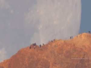 Ролик испанского профессионального оператора Даниэля Лопеса о том, как гигантская Луна надвигается на людей, посмотрело уже почти 1,5 миллиона человек. И видео продолжает набирать популярность на YouTube. Длится видео чуть более двух минут. Лопес снял его в горах Канарских островов, используя для создания видео телескопический объектив. Именно благодаря такому объективу изображение Луны и было увеличено в разы. Снимал оператор с расстояния в 16 километров. Поэтому люди на видео и выглядят такими маленькими по сравнению с Луною. Читайте также Новолуние: что нельзя делать и что нужно По словам Лопеса, кроме использования специального объектива, никаких других манипуляций или редактирования он с роликом не делал. |