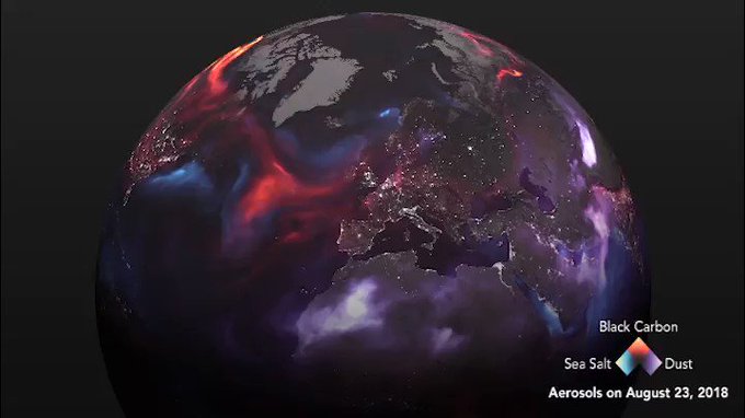 If you have ever watched smoke billowing from a wildfire or dust blowing in the wind, you've seen aerosols. This visualization uses @NASAEarth satellite data to show the expansive view of the mishmash of particles that dance & swirl through the atmosphere go.nasa.gov/2wnTIk6