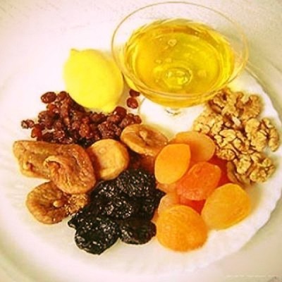 В качестве натуральной витаминной добавки очень хорошо принимать так называемую "Пасту Амосова". Академик Амосов рекомендовал послеоперационным больным укрепляющую смесь, чтобы организм быстрее восстанавливался. Она и для здоровых людей полезна. Вот ее рецепт: взять по 500 г - изюма, - кураги, - инжира, - чернослива без косточек, - грецких орехов и - 1 лимон с кожурой. Все перемолоть в кухонном комбайне или через мясорубку. - Добавить 500 г меда. Все перемешать и разложить по банкам. Эта смесь - просто кладезь микроэлементов и витаминов. |