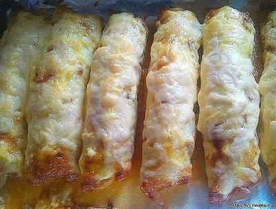 Получаются Очень ВКУСНЫМИ и ничего сложного в приготовлении нет. Ингредиенты: ● Куриный фарш – 400 г ● Яйца – 6 штук ● Молоко – 6 столовых ложек ● Майонез – около столовой ложки ● Соль, перец, приправа для курицы. Для начинки понадобятся: ● шампиньоны (можно использовать вместо шампиньонов небольшой соленый или маринованный огурчик, но я делала с шампиньонами) Приготовление: 1.Сначала надо испечь блинчики. Они пекутся по одному: вбить одно яйцо в мисочку, добавить столовую ложку молока (или воды), посолить и взбить вилочкой, как на омлет. Пожарить из этого один яичный блинчик. Затем, таким же образом пекутся остальные блинчики. 2.Шампиньоны нарезать мелко и обжарить на раст.масле, в конце жарки посолить.(если в начинку использовать огурцы, то их только нарезать соломкой). 3.Куриный фарш посолить, поперчить, добавить специи для курицы. Намазать подготовленный фарш на блинчики. 4.Смазать сверху майонезом. Выложить на край каждого блинчика примерно столовую ложку начинки, свернуть все вместе рулетом, чтобы начинка была внутри. 5.Смазать противень маслом, выложить подготовленные бризольки, сверху я их смазала немного майонезом и посыпала тёртым сыром. Поставить в разогретую до 200 С духовку до полной готовности (примерно 30 минут). |