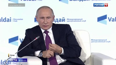 Путин раскритиковал лицемерие Вашингтона, предостерег от попыток загнать Северную Корею в угол, напомнил Западу о потерянном доверии — это лишь несколько заголовков сегодняшних иностранных СМИ, которые подробно анализируют речь президента на заседании Валдайского клуба. Впрочем, при внимательном прочтении западных газет обнаруживаются купюры, несколько искажающие смысл. Почти четырехчасовое выступление Путина иностранная пресса моментально разобрала на цитаты, которые сегодня появились во всех мировых новостях. И, кажется, нет вопросов, на которые бы президент не ответил: Ближний Восток и КНДР, Европа и Украина, но большая часть — про российско-американские отношения. Причина их глубокого кризиса — в недоверии. "Вот мы взяли сейчас в одностороннем порядке и уничтожили все химическое оружие. Американские наши партнеры сказали: нет, мы пока не будем, денег нет. У них денег нет, у них печатный станок доллары печатает, а у них нет денег. А у нас есть. Что касается ракет средней и малой дальности: если это не нравится и у кого-то есть желание выйти из договора, с нашей стороны ответ будет мгновенным, хочу об этом сказать и предупредить, мгновенным и зеркальным", — заявил президент России Владимир Путин. Эту фразу — про зеркальный ответ — перепечатали многие западные издания. "Москва будет разрабатывать новые системы вооружений, если Вашингтон будет делать то же самое" — это британская Independent. New York Times пишет: "США — источник беспрецедентной антироссийской кампании". Что хотел сказать Путин западу, объясняет Bloomberg. "Он сказал два или три раза слово "уважение", что если Россия будет более сильна, она уже сильна достаточно, и тогда повышается уровень уважения. И с того и надо начинать нормализацию отношений между Россией и другими странами", — считает Петр Дуткевич, директор Центра изучения государственного управления и общественной политики Карлтонского университета (Канада). Про Трампа речь тоже шла. А также про неспособность США, уверовавших в собственную исключительность, держать слово. По этой причине, объяснит министр Лавров, Россия и не намерена присоединяться к Договору о запрете ядерного оружия. "Полная ликвидация возможна только в контексте всеобщего и полного разоружения, при условии обеспечения равной и неделимой безопасности для всех, в том числе, и обладателей ядерного оружия, как это предусмотрено Договором о нераспространении. Представленный же к подписанию документ о запрещении ядерного оружия далек от этих принципов", — объясняет министр иностранных дел РФ Сергей Лавров. Пока на борьбу с Россией Запад бросает весь арсенал давления. Один из его элементов — так называемый акт Магнитского. Смерть консультанта компании Уильяма Браудера, скажет Путин, используют в большой геополитической игре. "В основе всех произошедших событий лежит противоправная деятельность целой группы лиц во главе с известным господином Браудером, который 10 лет жил в РФ в качестве туриста и занимался фактически незаконной деятельностью, скупал акции российских компаний, не имея на это право, не будучи резидентом РФ. Десятки и сотни миллионов долларов выводил за границу, уходил при этом от налогов как в России, так и в США. А в последние годы по открытым данным, по американским открытым данным, пожалуйста, посмотрите, компания, с который свя