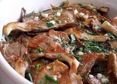 — Отрезаем с вешенок твердую часть ножки. Чеснок и петрушку порубить мелко посолить и поперчить, приготовить соль и уксус. — Раскалить в глубокой сковороде растительное масло, обжарить вешенки с обеих сторон до золотистого цвета. — Перекладываем грибы слоями в широкую посуду, ещё горячими посыпаем солью, перцем, смесью рубленого чеснока и петрушки и сбрызгиваем уксусом. — Можно сразу есть, а можно поставить в холодильник.